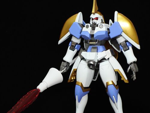 完成しました。淡い水色の成形色を真っ白に塗り替えて、騎士感アップ。 青緑のパーツもブルーにしたので、カラーリングはがらっと変わりました。ゴールドパーツもしっかり塗装したので、プラスチックの雰囲気は減ったかな。 プレバンならではのマニアックな…